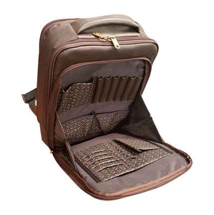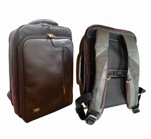 Executive backpack, in genuine leather with high-end canvas, double handle, 34 services