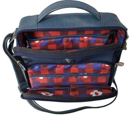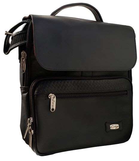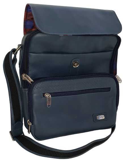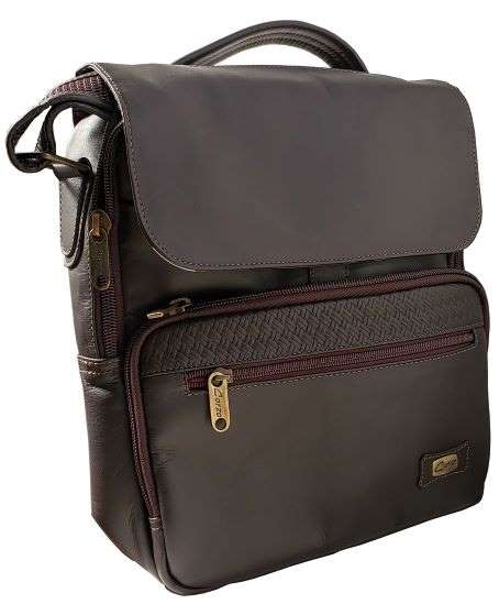 Hands-free, in leather, with cover, front pocket with gusset and back pocket, 7 services.