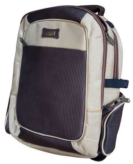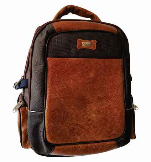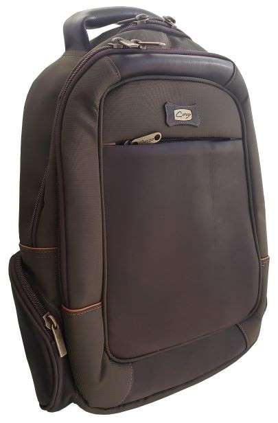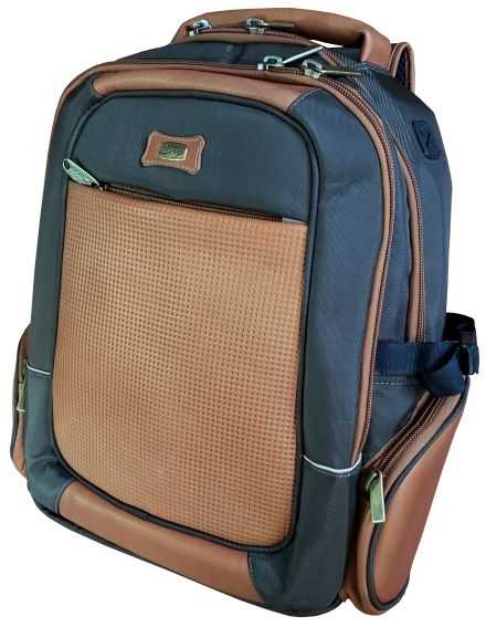 Backpack, made with genuine leather and fine canvas, with computer holder and bottle holders, 9 services.