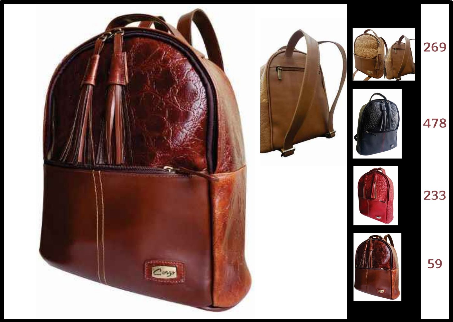 Leather backpack bag, type tula with plumes, 5 services.