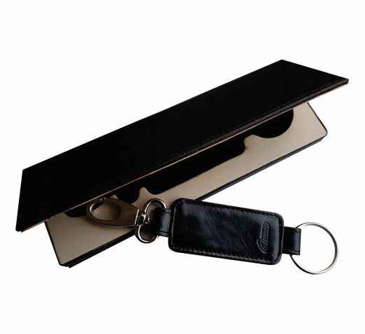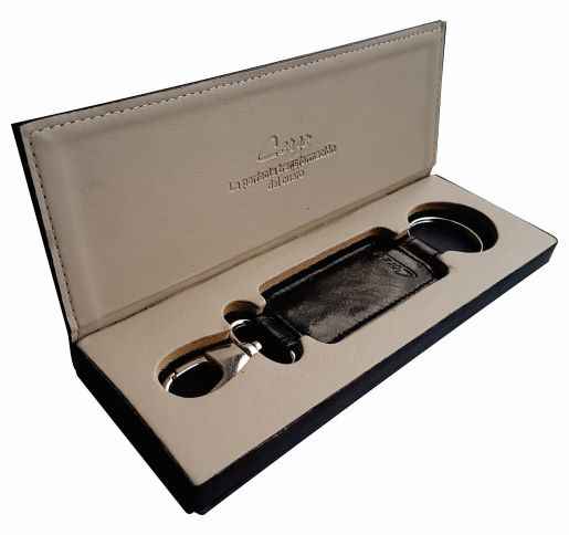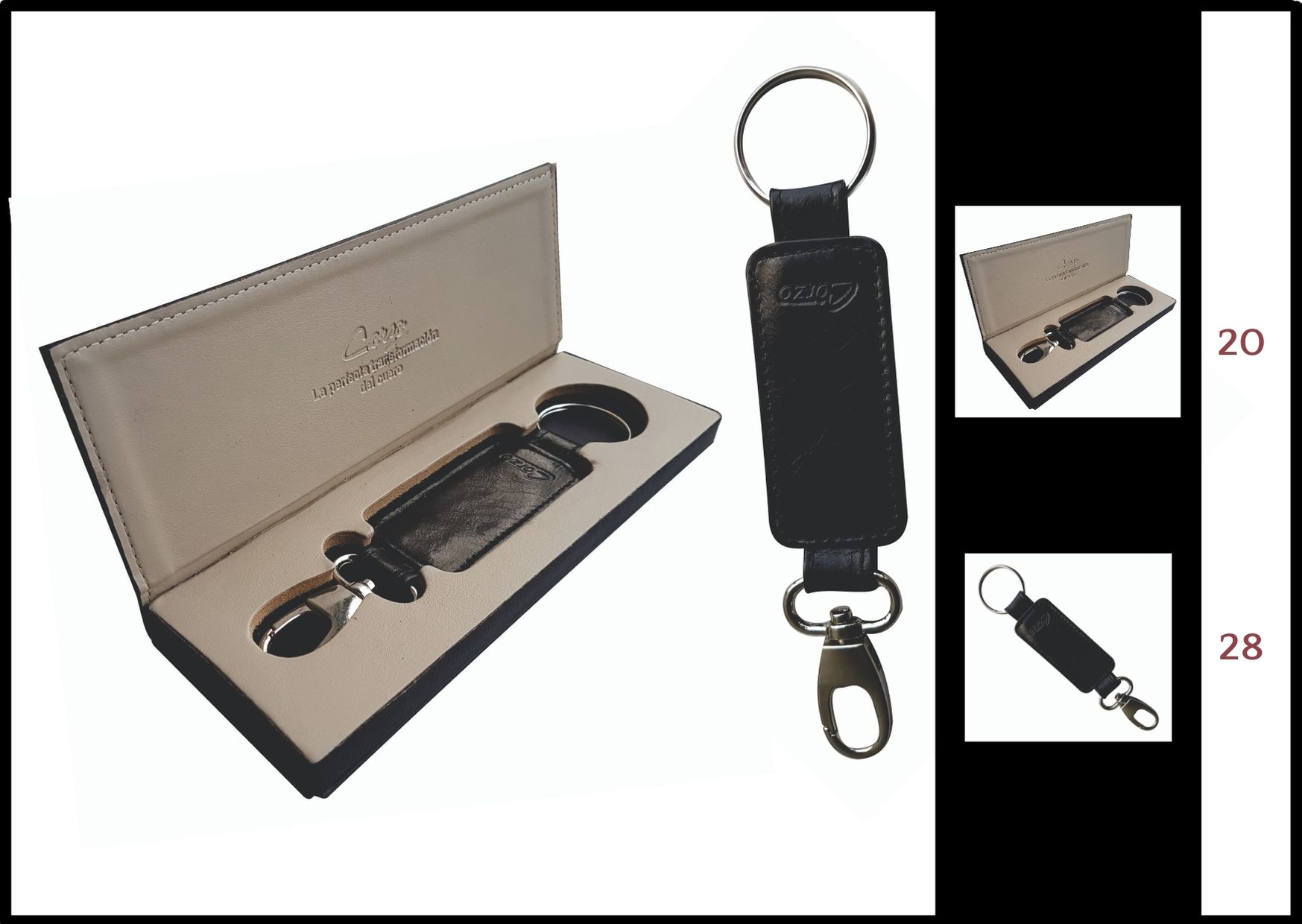 Calfskin leather keychain, 2 fittings , with carabiner and ring, includes a luxury case.