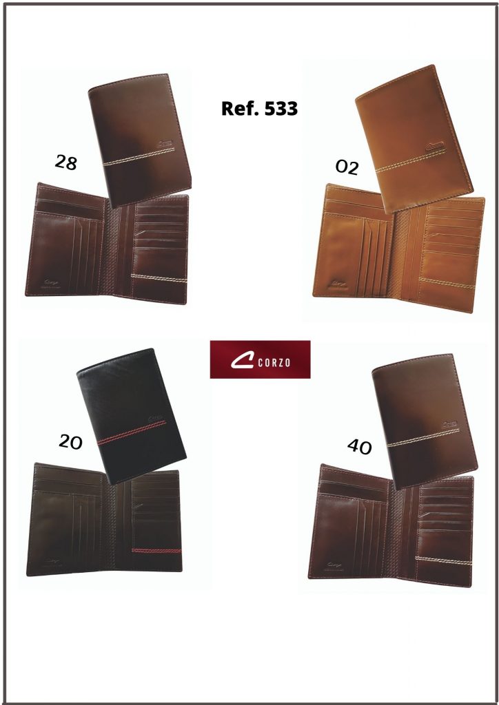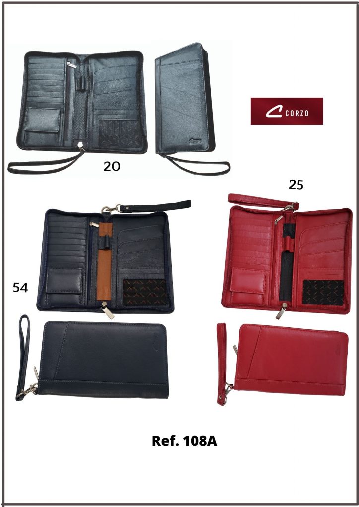 Document holder and unisex leather wallets 103 - Leather document holder - Almark 1 0 533 - Calf leather passport holder wallet - Itaca. 108A - Zippered Leather Travel Organizer - Trip 2 110 - Long leather wallet - Oxford 075 - Simple leather passport holder - Trip 895C - Calf leather card holder - Window